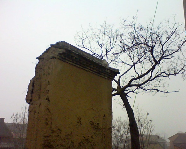离开的时候村口的时候看到这个,想起那个石碑。这个土墙是过去村子抵御土匪的城墙,现在已经成这个样子了,一棵枯树守着他,就像爷爷守着老房子。