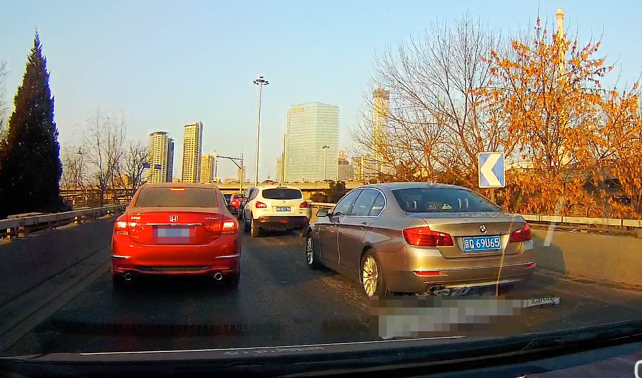根据法律法规,遮挡号牌扣12分+罚款+外地牌照闯限行扣3分+罚款。于是,这样一口气扣15分的老哥就这样出现在你面前,早高峰的拥堵几乎不会有太快的车速,那么轻轻地撞他吧,撞完后停车和气的要他5000块-10000块,价格公道童叟无欺,否则就拿着行车记录走程序,相信15分和5000块的分量都能拿捏得住。